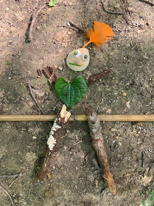 La nature est une véritable thérapie grâce aux possibilités de création qu’elle offre. Elle permet de se reconnecter à l’environnement et aussi à soi et à son élan vital, à sa créativité, de vivre l’instant présent. Elle invite à nous arrêter pour réellement voir ce qui nous entoure : odeurs, matières, couleurs, lumière, saison, prendre conscience du moment de la journée, du monde vivant. La nature nous incite à nous connecter à nos impressions, à nos sensations. Retrouver son âme d’enfant en partant à la découverte des trésors, des cadeaux laissés sur le sol, une pierre d’une couleur surprenante, une feuille atypique, un fruit grignoté puis oublié par un écureuil à la forme originale…