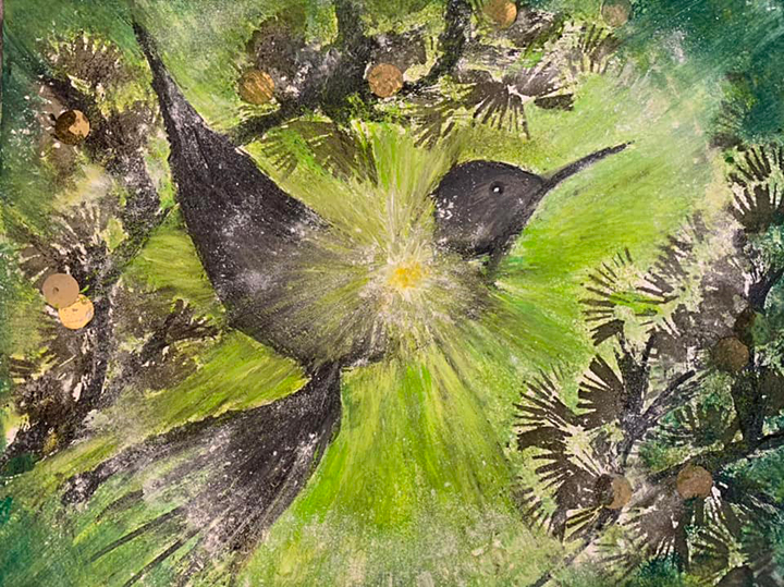 La peinture intuitive est une expérience libératrice, c’est une créativité non inhibée, individuelle, portée par la joie de se sentir libre d’exprimer sans contraintes son propre imaginaire, ses émotions, ses envies et besoins en se laissant porter par son intuition. C’est accepter de réaliser un objet sans contrôle, sans directivité, sans auto-jugements juste par des envies de couleurs et l’expérimentation. C’est redécouvrir la créativité spontanée comme le ferait un enfant acceptant la future toile telle quelle, sans recherche d’une quelconque finalité esthétique. C’est se laisser surprendre et découvrir les secrets dévoilés par la toile, les messages délivrés et importants pour soi !