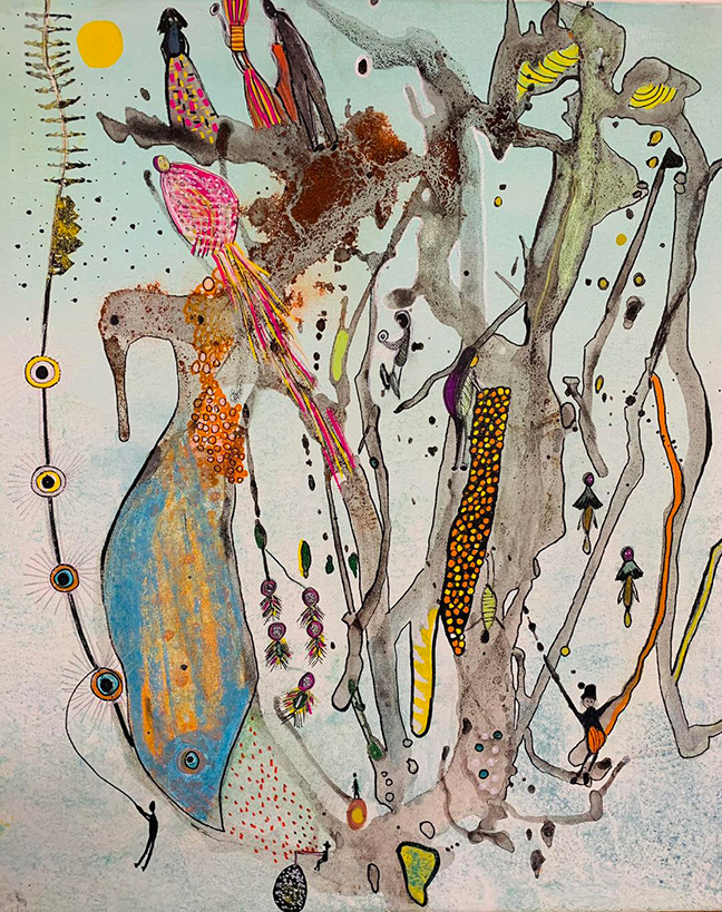 La peinture intuitive est une expérience libératrice, c’est une créativité non inhibée, individuelle, portée par la joie de se sentir libre d’exprimer sans contraintes son propre imaginaire, ses émotions, ses envies et besoins en se laissant porter par son intuition. C’est accepter de réaliser un objet sans contrôle, sans directivité, sans auto-jugements juste par des envies de couleurs et l’expérimentation. C’est redécouvrir la créativité spontanée comme le ferait un enfant acceptant la future toile telle quelle, sans recherche d’une quelconque finalité esthétique. C’est se laisser surprendre et découvrir les secrets dévoilés par la toile, les messages délivrés et importants pour soi !